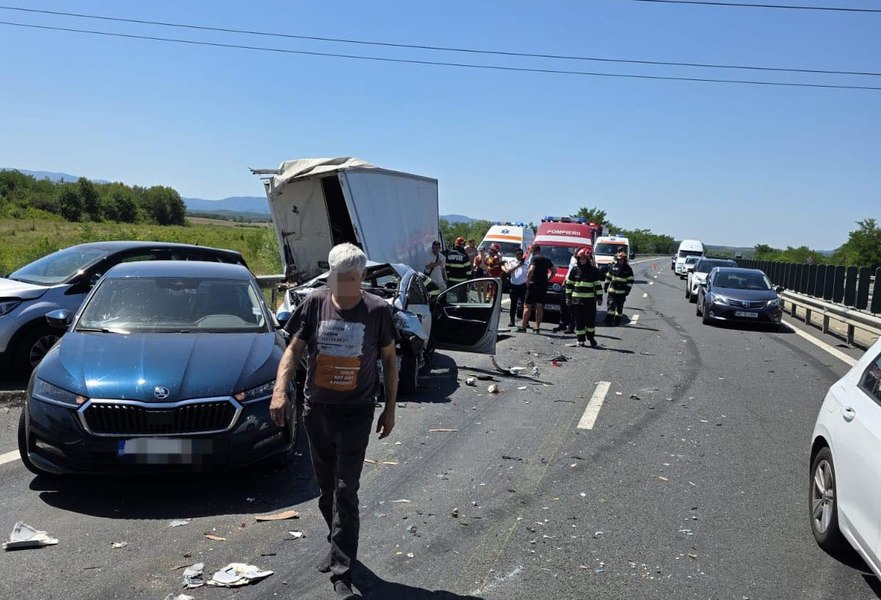Trei copii şi 11 adulţi au fost răniţi, vineri, 4 iulie 2025, într-un accident rutier petrecut pe autostrada A1 Deva-Nădlac, pe sensul de mers spre Deva, în zona localităţii timişene Margina. Au fost implicate cinci autoturisme, un autotren şi o autoutilitară.