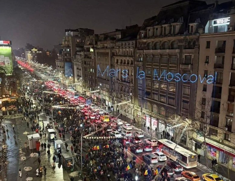 Bărbatul care a proiectat mesajul ”Marş la Moscova” pe clădirile din Piaţa Universităţii în timpul protestului AUR de joi seară a fost amendat.
